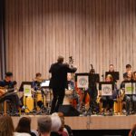 Echten Big Band-Sound präsentierte die Young Lions Big Band der Jugendmusikschule Südlicher Breisgau (JMS) bei ihrem Konzert im Kurhaus Bad Krozingen. Ihr Auftritt zusammen mit den Gästen Èmile Steiner, Shana Moehrke und Dario Moehrke wurde vom Publikum gebührend gefeiert. Die etwa 20 Kinder und Jugendlichen zwischen 11 und 17 Jahren an Klarinette, Trompete, Saxofon, Posaune und Flöte sowie die Rhythmusgruppe mit Schlagzeug, Congas, Bass, Vibrafon und Klavier wuchsen über sich hinaus und spielte bis zum Schluss ein tolles Konzert. Der Auftritt eines Quartetts mit Schlagzeuger und Bandleader Arno Pfunder, bei dem ausschließlich Originalkompositionen der Mitwirkenden gespielt wurden, war ein weiteres Highlight und wurde mit viel Applaus honoriert.