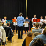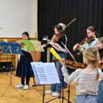 Den Auftakt des bunten Konzertes machte Emma Ernst an der Gitarre, sie überzeugte als Solistin. Das Streicherorchester „Die Tapferen Streicherlein“ für Anfängerinnen und Anfänger besteht seit diesem Schuljahr aus zwei Gruppen, eine in Merzhausen und eine, wie bisher in Staufen beheimatet. Für den Konzertabend hatten sie fusioniert und zeigten, dass sie auch als Anfänger an ihren Streichinstrumenten durchaus als Orchester zusammenspielen können. Die Leitung des Ensembles liegt bei Jeanette Dorée und Marie Desgoutte.