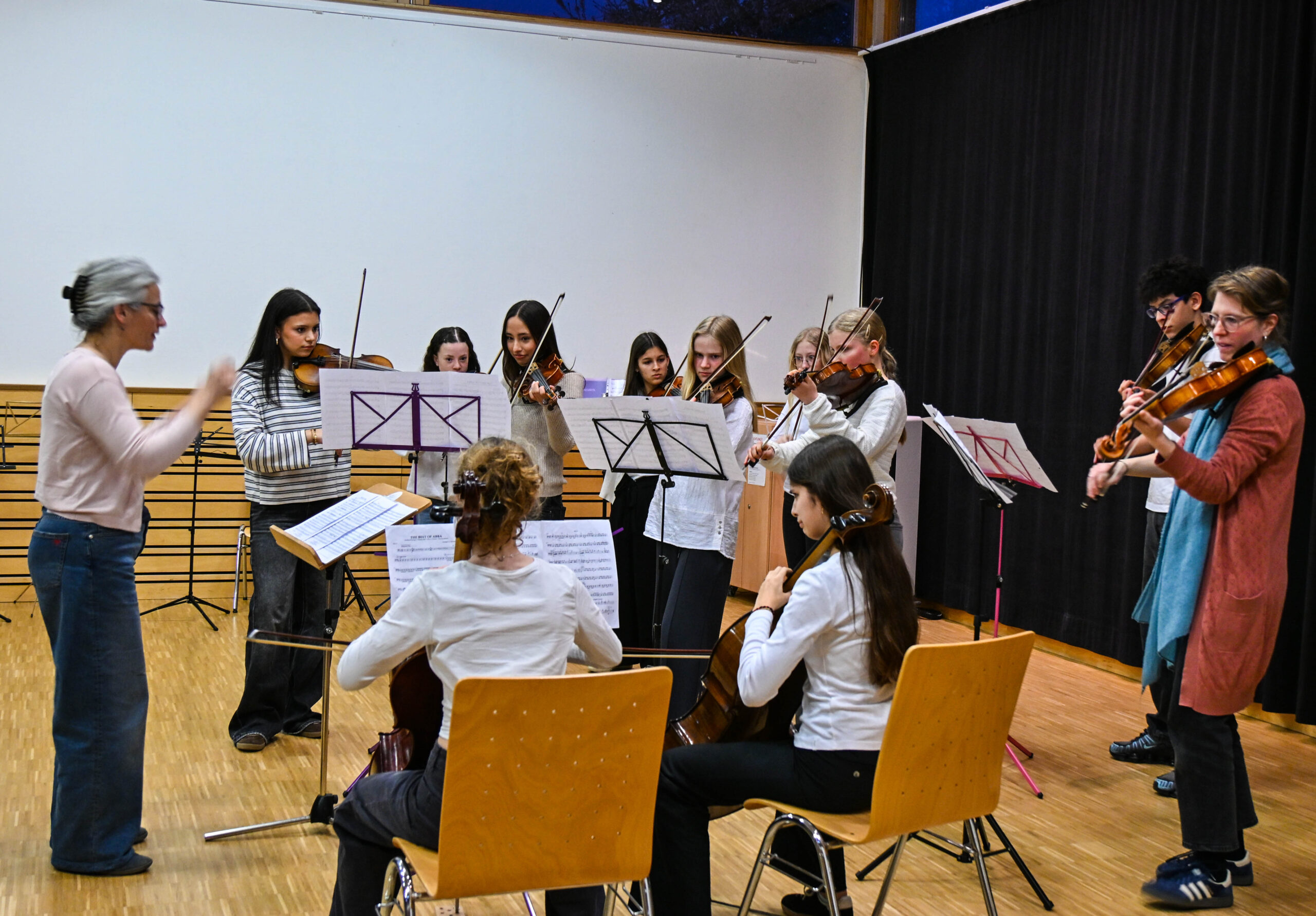 Blasmusik spielt eine große Rolle in Wettelbrunn und folglich ist die Bläserklasse der Thaddäus-Rinderle-Schule (TRS) in Wettelbrunn gut besucht. Die Kinder der 3. und 4. Klasse spielen ihr Instrument seit einem halben oder seit eineinhalb Jahren und überzeugten unter der Leitung von Nathalie Viehöver mit drei rockigen Stücken und großer Spielfreude.  Den Sprung vom Rock zum Barock, nämlich zu einem Streicher-Konzert von Georg Philipp Telemann, bewältigten die Sinfoteenies mit Bravour. Die Jugendlichen mit drei oder vier Jahren Instrumentalunterricht wurden von Insa Hülsebusch dirigiert. Mit drei Stücken der Pop-Gruppe „Abba“ zeigten die fortgeschrittenen Streicher des Faust Streicherensembles unter der Leitung von Marie Desgoutte, dass auch Geigen, Bratschen und Celli Pop- und Rock-Musik spielen können.